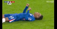 英超第7轮,切尔西2-1绝杀利物浦,赛后绝杀功臣埃斯特旺躺地上庆祝,巴西同胞若昂-佩德罗过来猛猛摇晃+抱起怒拍。