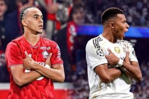 伊桑-姆巴佩进球后做出哥哥标志性的庆祝动作,他在社交媒体上晒出对比照片,配文:“我们一家的故事。”
