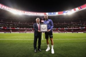 今日,马竞官方晒图,球队主席塞雷佐向奥布拉克颁发了代表球队出战500场里程碑的纪念牌匾。