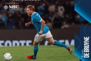 体育资讯10月8日讯 那不勒斯官方宣布,德布劳内当选球迷票选的9月份最佳球员。